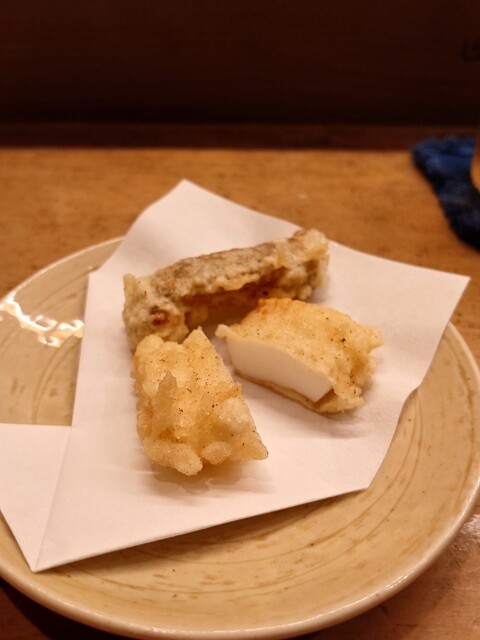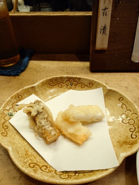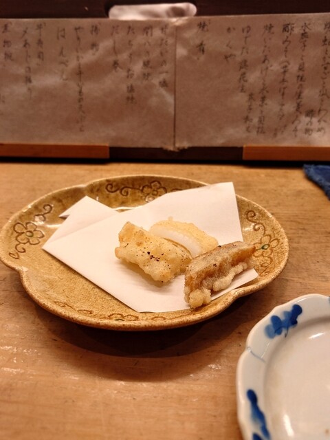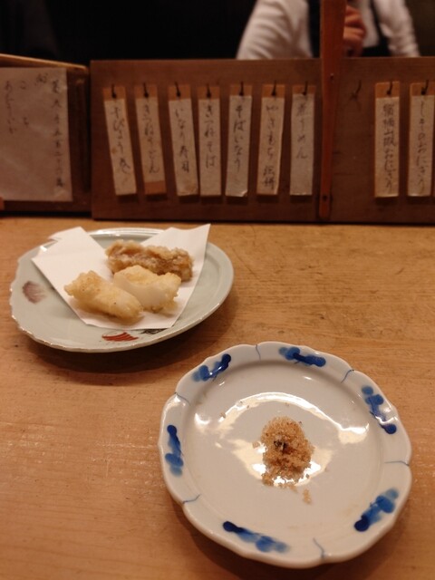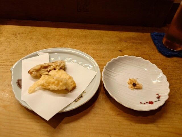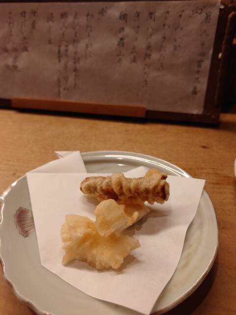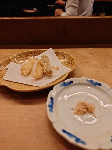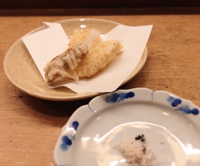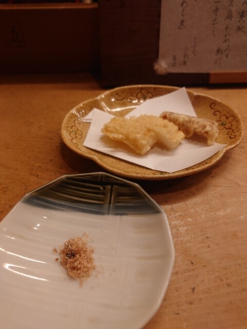 アオリイカと干し芋の天ぷらを大徳寺納豆の入った塩で頂くと淡泊な天ぷらが2倍にも3倍にも美味しくなる気がするのは気のせいではないだろう。