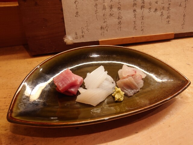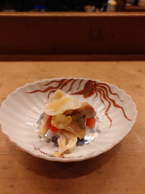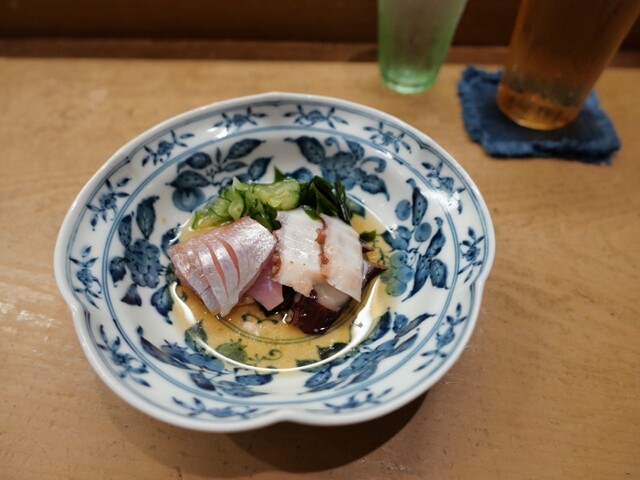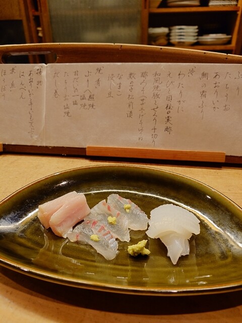 この日はアラカルトで頂くことにした。完全に大将に任せても良いとは思うのだがその日の気分で微妙に食べたいものが変わってくることもあるので後悔しないように自分ですべて選んだのである。