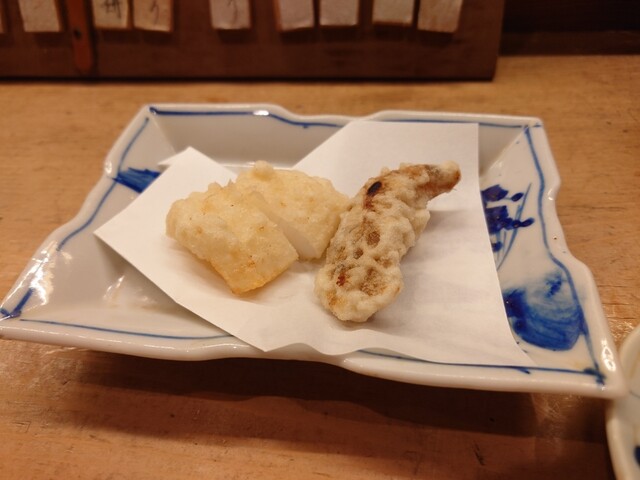 イカと干し芋の天ぷら 大徳寺納豆の塩