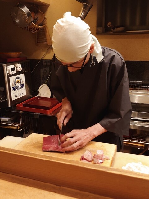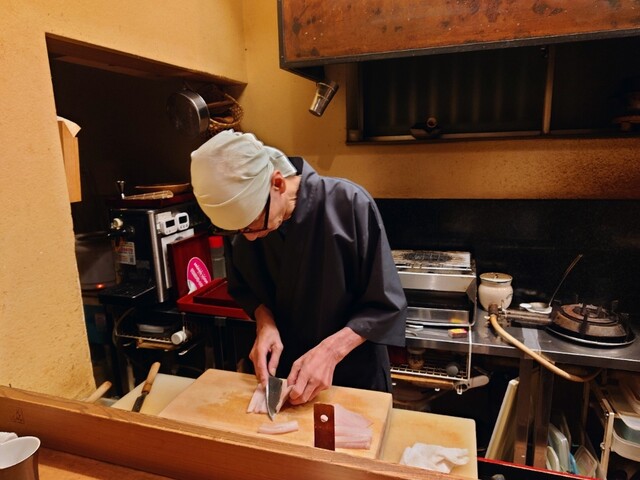 その理由はよく分からないのだが、その一つにほぼ「作り置き」というものがないのである。通常和食店でも鮨屋でも魚は短冊になったものを刺身とかネタにするのであるが、こちらでは提供直前にウロコだけ取ってある魚からおろすのである。魚の身は骨から剥がした瞬間から劣化が始まるが捌いてすぐのお刺身を頂けるため抜群に美味しいのだ。