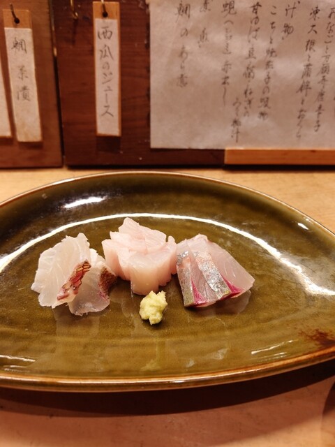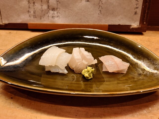 短冊からではなく オーダーが入ってからわざわざ 骨付きの身から外して提供するという細かさがこの刺身をさらなる高みに持っていっているようであった。