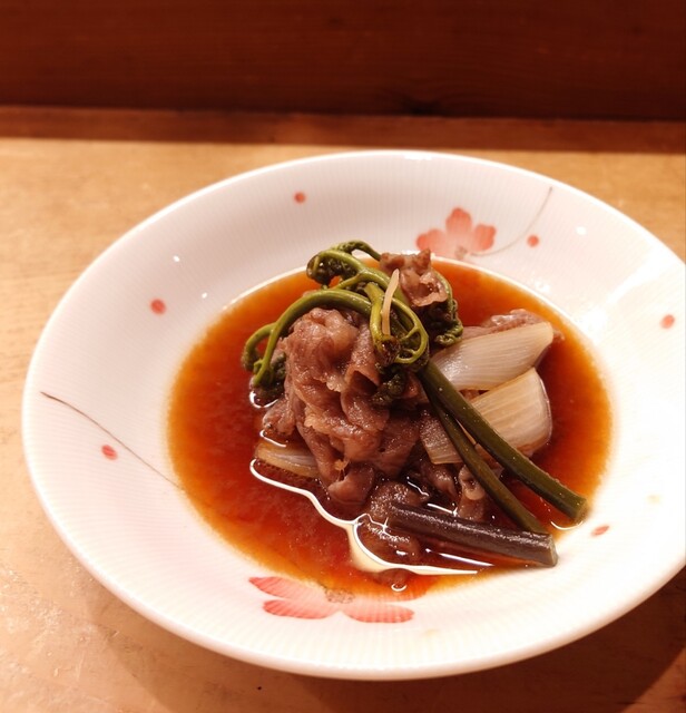 今回は椀物はなかったが炭水化物前の最後は牛肉と茗荷のすき焼きを楽しませて頂いた。