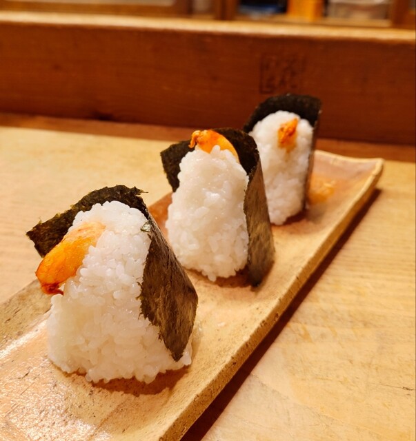 通称「宇宙一の天むす」は料理が終盤に差し掛かると客は皆我先にと注文する。こちらで使用する土釜ご飯は量が限られているため天むすの個数に制限があるのだ 。
