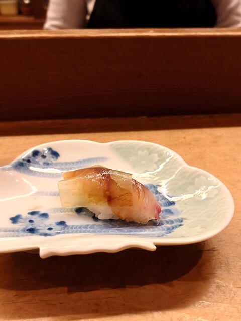 さて最初はサワラとカンパチのお造りからである。サワラはこの時期どこのお店でも食べさせるのだが下処理の良さからなのか抜群に美味しかった。脂もしっかり乗っていて今期最高のサワラであった。カンパチは細く切ってありカンパチ独特の食感を楽しむことができた。おそらくまだ新鮮過ぎて味が回っていないからこういう切り方になったのだろうな、と想像してしまった。