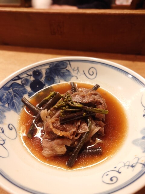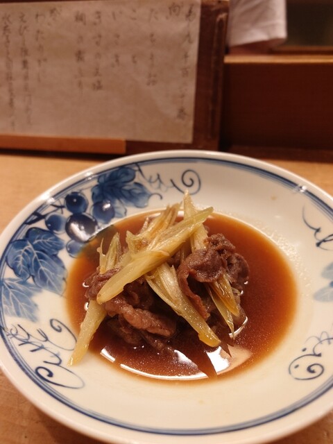 帆立と水茄子の味噌和えを頂いた後は牛肉のすき焼だ。すき焼きと言っても鍋が出てくるわけでない。店主が調理場で作ってお皿に出してくれるタイプのものであった。肉もとても美味しいのだが量がもう少し多い方が良い。メニューでは1人分しか出てこないので、必ず複数人で行った場合は人数分だけ頼まないといけないことをこのあたりで気が付いたのだ(笑)