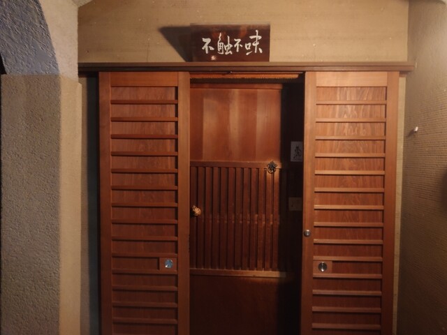 場所は浄心駅から西に行ったところの住宅街の中である。看板もないため行ったことのない人が迷わず行くのは無理であろう。扉を開けると薄暗い土間があり、扉を開けるとその左手にはカンター席がある。奥には個室もあるらしく、人の出入りは感じたのであるがどのような状況にあるのかは確認していない。