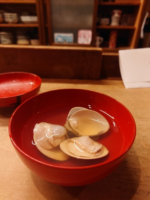 太刀魚と真鯛の刺身を頂き、揚げ物はアオリイカと干し芋の天ぷらであった。大徳寺納豆の入った塩で頂くアオリイカはまた格別、そしてこちらの定番の干し芋の天ぷらは唯一無二の美味しさであった。そのあと酒蒸しの蛤だったのだが、この出汁が最高であった。こんな美味しい出汁、京都の有名店でも味わうことは稀であろう。もう悶絶の一品であった。