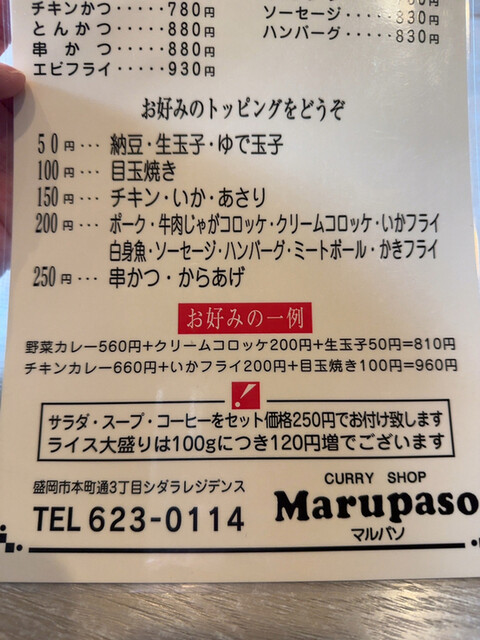 トッピングメニュー