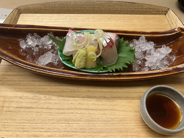 ①お刺身のアジとタイ・・跳ね返るような弾力でおそろしく新鮮でございました