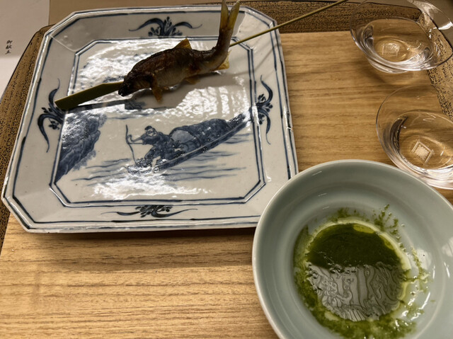 先月軽井沢の和食で鮎が出てきましたが、とっても鮎がゴツくて、骨がかたく、おいしい鮎を食べたいなぁと思っていたので、さすがのこぶりで、骨も気になんないおいしいあゆでした。