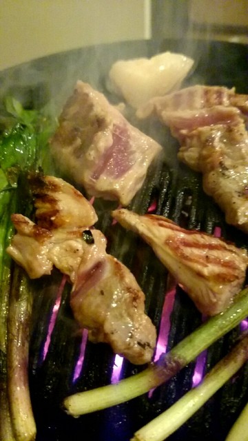 今回は新千歳空港から札幌に向かう途中で寄り運転あるのでノンアルコールビールで乾杯する。オーダーはもちろんジンギスカン‼これしかありませんが前回同様一皿目はもも肉…店主がオーダー受けてから切り分けるので見た目から明らかに新鮮だ。炭火のジンギスカン鍋がセットされ火力もMAXで最高の状態。普通のジンギスカン屋のもも肉とはやっぱり別物の肉厚なのにやわらかいのが特徴。火力も抜群なので焼き目がもはやステーキ状態で最高に美味しい♪ここのもも肉を食べたらジンギスカンの概念が変わります。追加のお肉は脂身もあるあばら肉も表面を焼くだけくらいがむしろ旨いです。今回はお店も混んでいたので追加のお肉が中々来なかったってことでお店の計らいでこの時期旬の「行者にんにく」をサービスしてくれました。この行者にんにくも豪快に一房あり一気に焼き上げて食べたら最高です。北海道ならではの旬モノですが、旨いけどその分の匂いがかなりにんにくの匂いが残ります(笑)これも北海道にからには食べておきたいとこだ。でも旬は4~5月頃です。