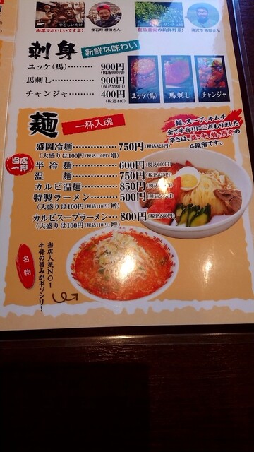生ビール良し、カルビ良し、冷麺普通、カルビ