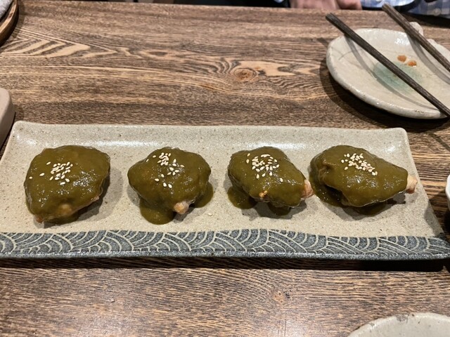 頼んだのはいつもの刺身の盛合せ、枝豆、コロッケ、鶏肉の九条ネギソースなど。お酒はビールの後は思い思いに焼酎の前割や知多ハイボールなど。料理にはみんな満足してくれて、低温調理でハム風にした鴨肉やモッツァレラチーズ入り茶碗蒸しを追加。〆はいつもの生ハムおにぎりと塩ラーメンを2つずつ頼んでシェアして食べました。