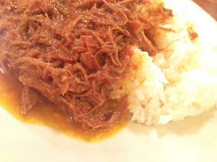 じっくり煮込まれた鶏肉はすっかりほぐれていて、少なくとも初めて目にするビジュアル。