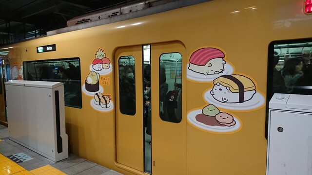 帰りはすみっこくらしとのコラボの電車でしたヽ(^o^)丿
