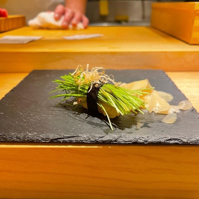焼き海苔の上に握りが乗っている形で塩で提供されましたが