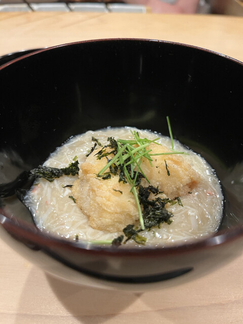 揚げたごま豆腐に唐津の赤ウニ♡溶けた♡