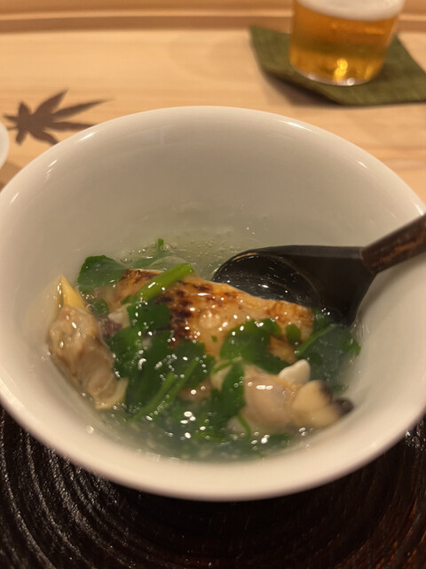 蛤の天ぷら、自家製カラスミ、翡翠銀杏が最高だったなぁ♡鮑の肝ソース和えは相変わらず皿舐めたくなる美味しさだし♡そして鱧松茸!なんじゃそりゃぁぁ反則でしょー!!焼き物が良いですよね本当。白焼き最高の焼き加減です。