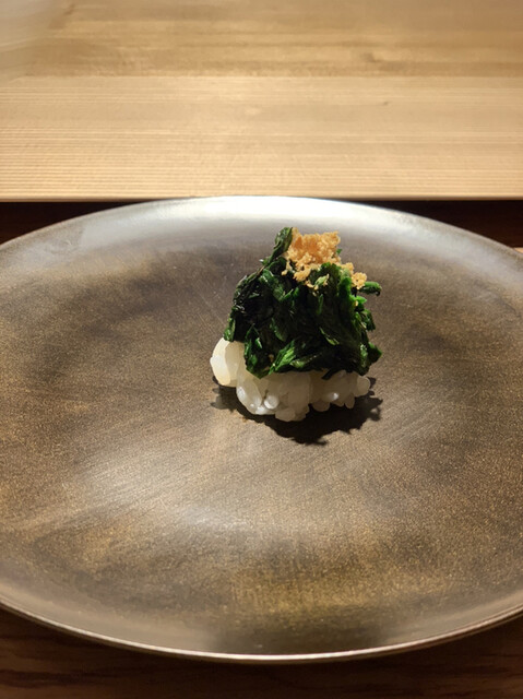 春菊のお鮨。薪?焼き?の香りが素晴らしいっ♡