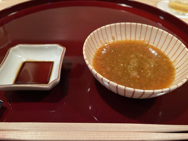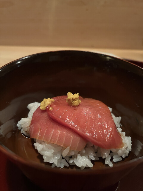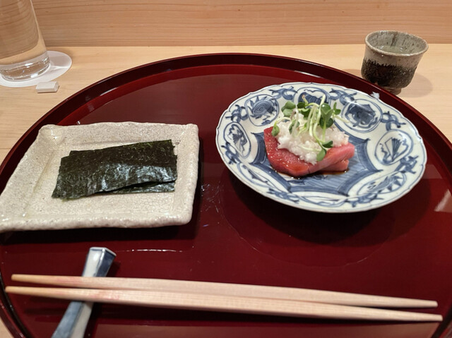 塩釜の鮪と山芋。三つ葉がええ仕事しとるわ〜!すんごい贅沢な山かけ(*⁰▿⁰*)