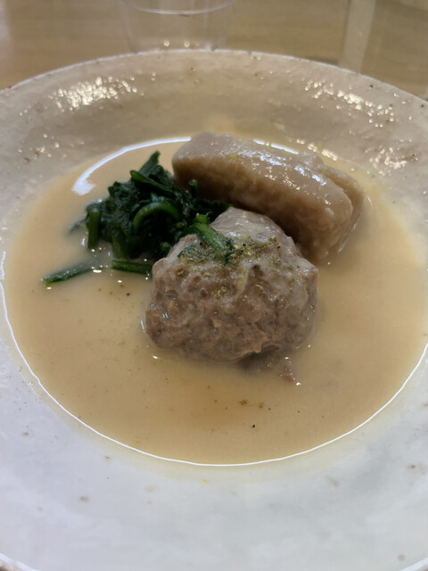 鶉のつくねみたいな!のと、海老芋だっけな?白味噌仕立てでほっこり♡