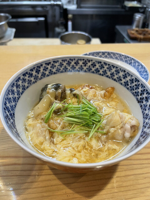 稚鮎とうどの卵とじ。山椒が効いてます!