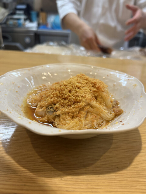 まっすぐカウンター6名のみ、回転性ではありませんが、夜の一回転のみ。でもすごい!これだけの量、種類をお料理はワンオペでこなされていらっしゃるとは(´⊙ω⊙`)