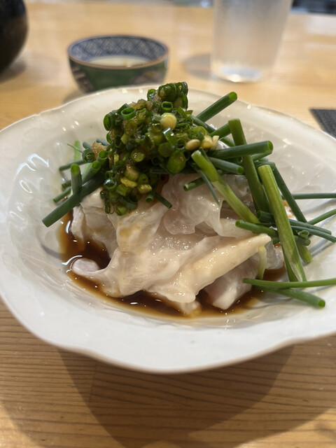 鱧の皮目はさすがに生じゃ食べられないんだって。皮目だけ軽く炙って、氷で瞬間冷却して鱧のお刺身!って初めて!