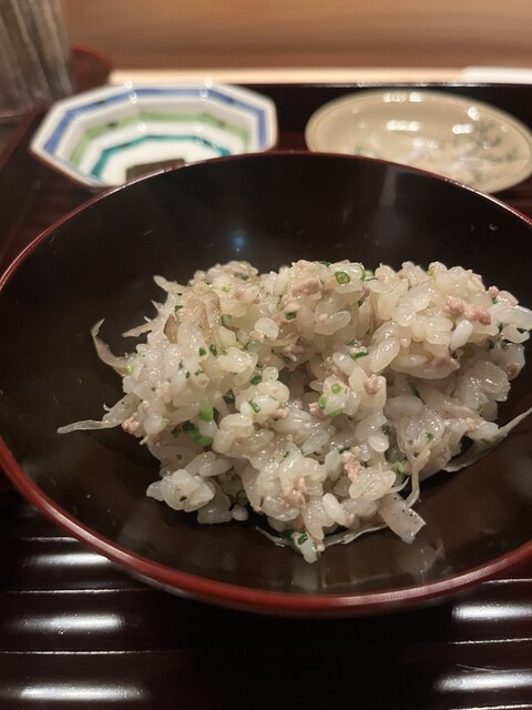 鮑とグリーンピース、はうすい豆の予定だったのが仕入れ先が間違えてグリーンピースになっちゃったけど結果美味しかったのでそのまま採用したとのこと笑 おいしけりゃなんでもいいよね!なんならこれうすい豆ですって言われてもわからない自信がある!