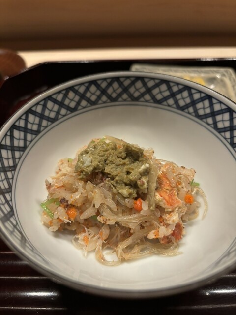 毛蟹のしんじょう!そっか毛蟹は夏…いや今夏じゃないか。まいっかやっぱ人に剥いてもらう蟹ほど美味しいものはない。そしてお出汁が優し〜っ♡