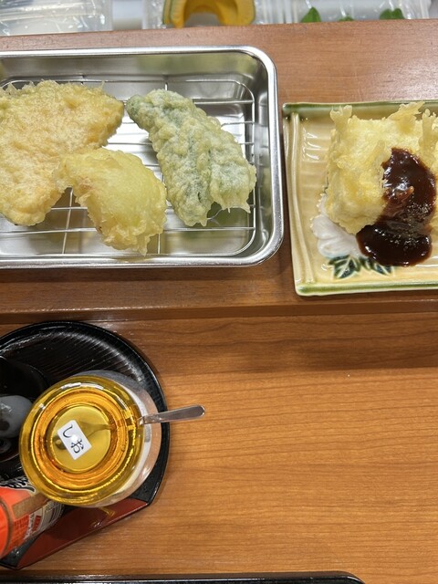 定食がメインのようですが、丼を頼んでいられる方もいらっしゃいました。天ぷらは、2回に分けて出してもらえます。天つゆがついてるけど、塩も天丼のタレもあって、好きなので食べれるのも、良いなぁと思いました。
