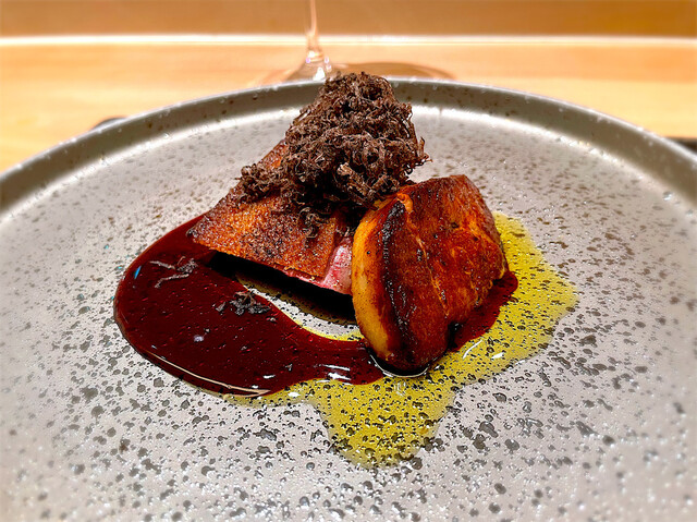 毎回定番のメニューを楽しみつつ、季節によって変わる食材を大石流のフレンチで堪能することができました。毎年冬の黒トリュフのフォアグラサンドパイ包みは、トリュフのザクザクという何とも贅沢な食感を楽しみつつ、去年も一昨年も食べたなぁという思い出を思い出させてくれます。
