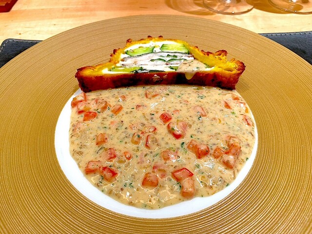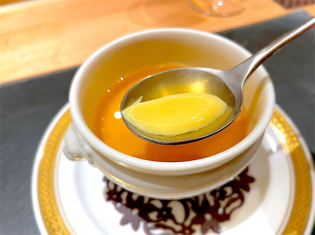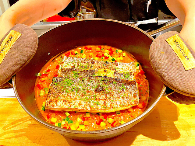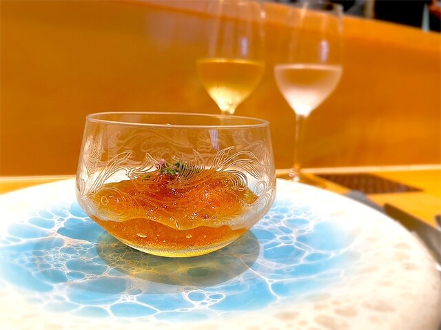 コンソメゼリー寄せやポトフなどいつものコースを彷彿させるところも憎いですが、これらもしっかり魚介が使われています。まさにコラボレーション。