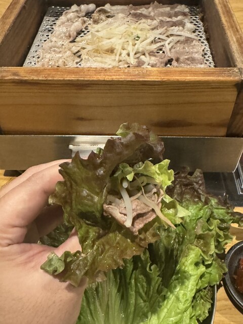 牛と豚の薄切りバラ肉をせいろで蒸した2種類のサムギョプサルが食べ放題のお店!!