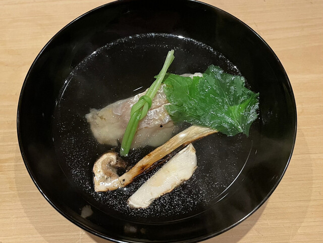 お椀:アイナメ 姫竹 蓮根 ちいたけ 三度豆 木の芽 道南真昆布の一番出汁