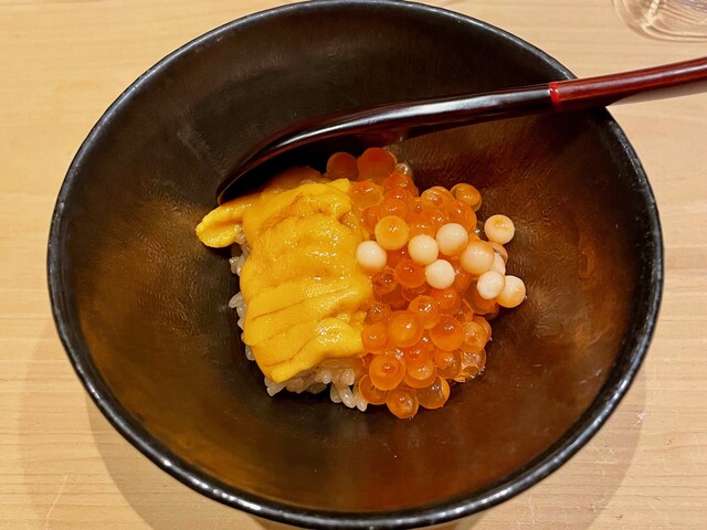 鮨屋の究極のちょっと丼:青森大間の紫雲丹 アコウ 赤イクラ 白イクラ