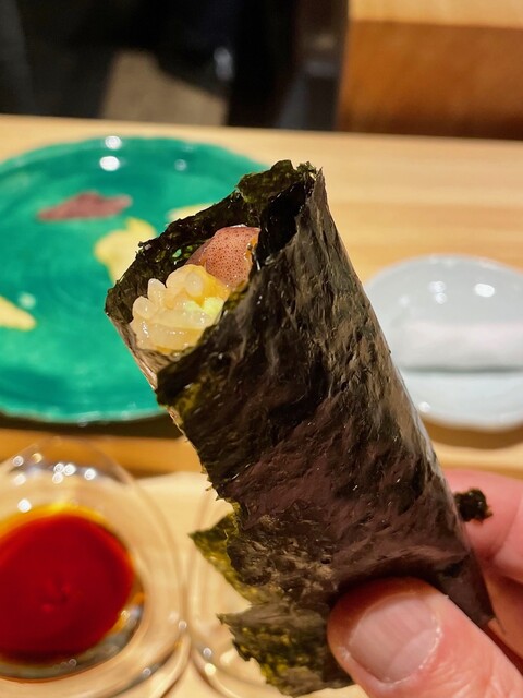 有明の一番海苔とカワハギの手巻き