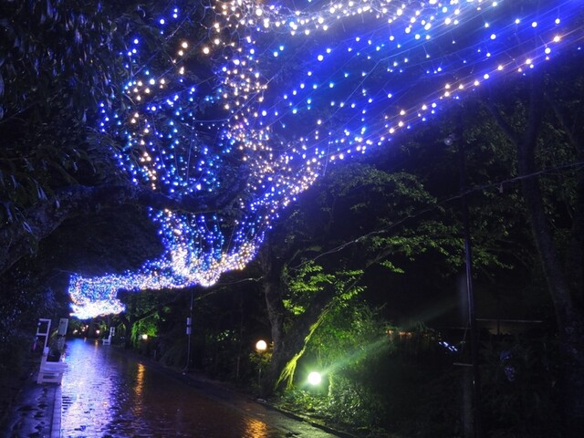 イルミネーションというと、一般には冬のイメージがあるかもしれませんが、ここ時之栖では夏の時期もイルミネーションをやっています。