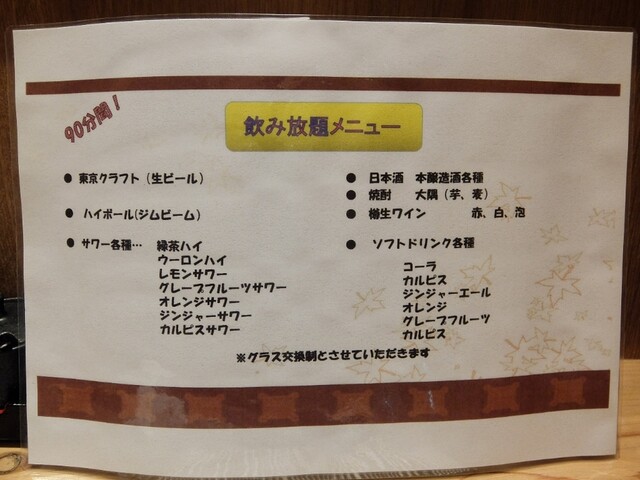 ドリンクは飲み放題。
