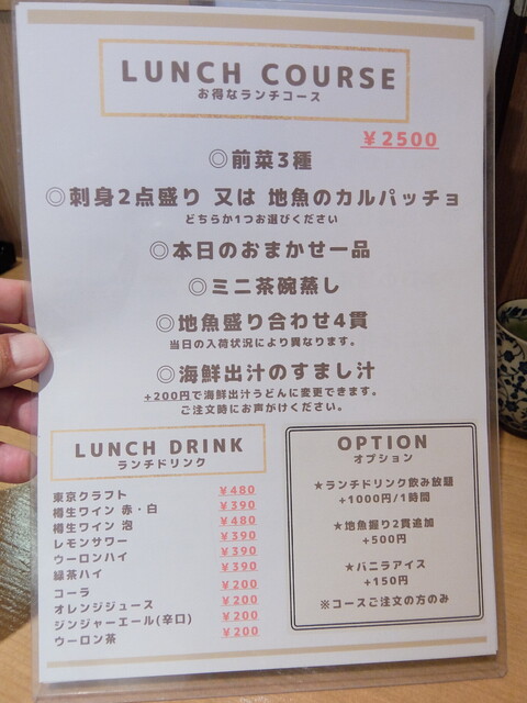 現在は緊急事態宣言で酒類の提供は自粛とのこと、緊急事態宣言が開けて通常に戻ったら、ディナータイムに来て思う存分新鮮な魚介とお酒を楽しめたらと思います。