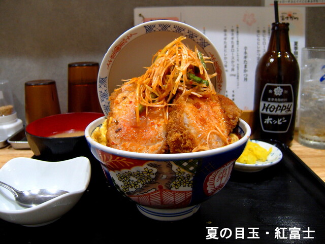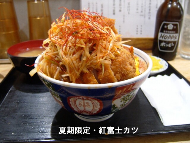 今回は、夏季限定メニューから旨辛揚げニンニク、それに赤富士カツ丼を無難に1辛でオーダー。