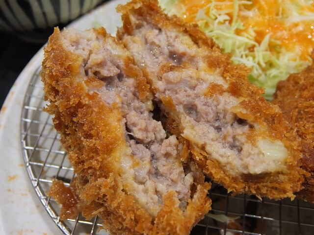 メンチカツは断面から肉汁が溢れるジューシーなもの。