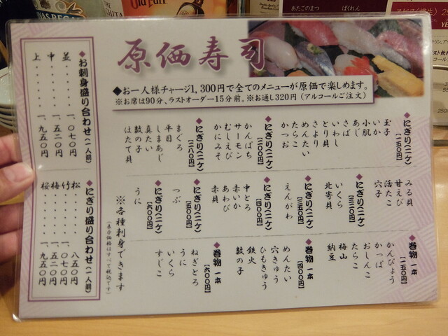 妻が下調べしたこちらのお店、何でも最初にチャージ料を支払うとお酒やお寿司が原価、格安で頂けるとの事。