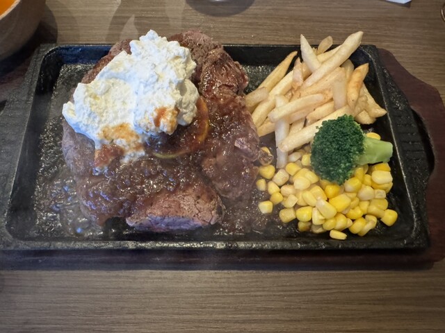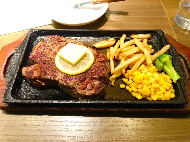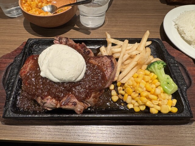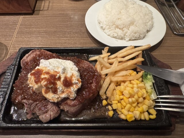 トータル20分程まつと、熱々の鉄板の上に美味しそうな大振りのステーキが到着、