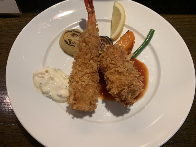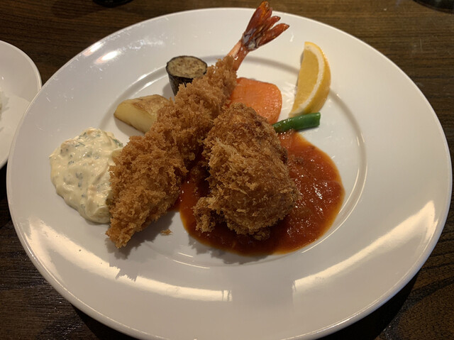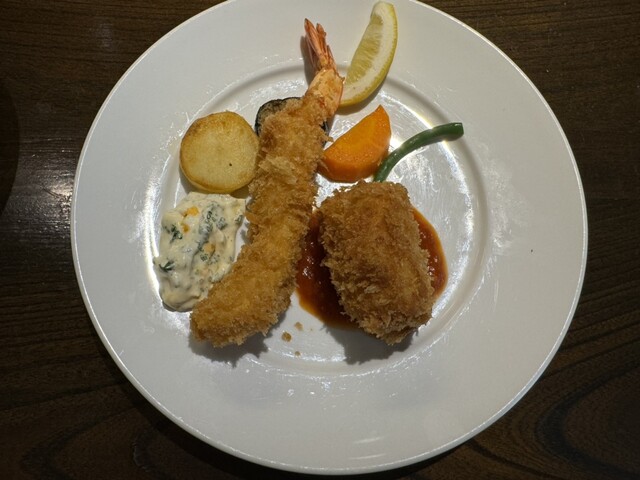 絶品のカニクリームコロッケとエビフライ