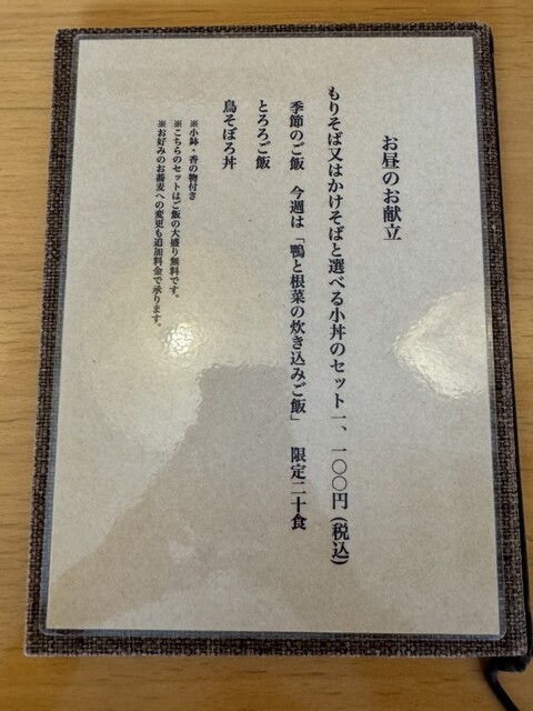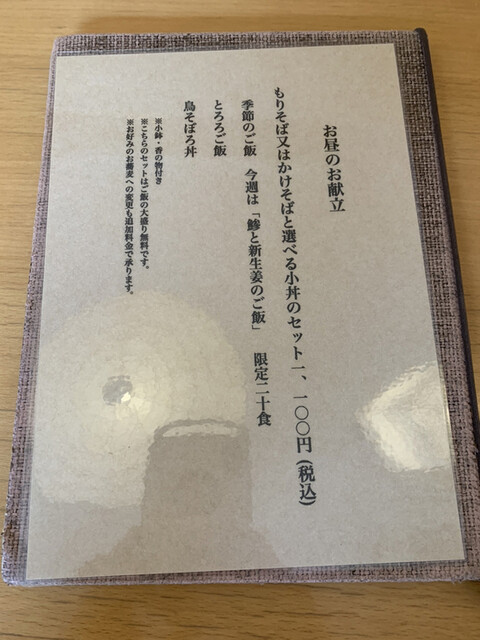 この日もランチタイムのかけそばorもりとご飯もののセット。