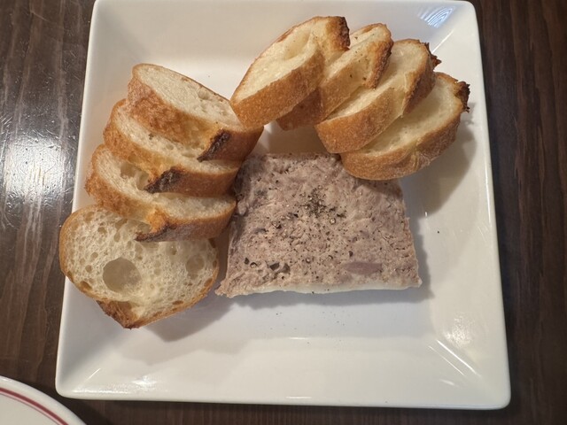 こちらはいつも食べているテリーヌですが、完成度が高く、クリームチーズの中に練り込んだピクルスとの組み合わせも絶妙。