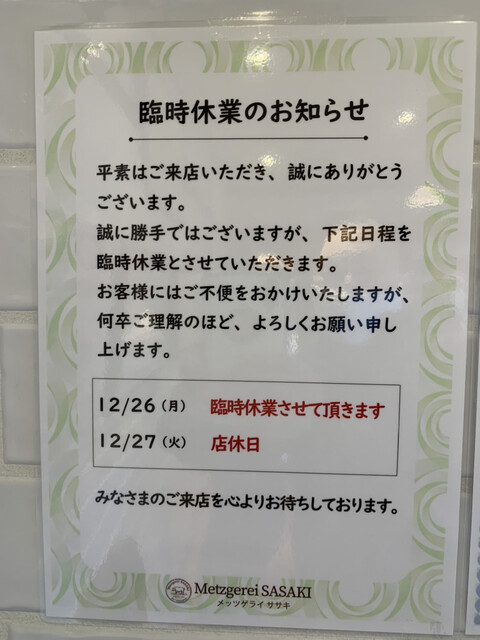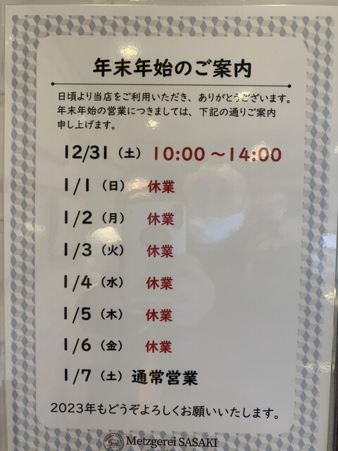 本年最初のMetzgerei Sasaki〜メッツゲライササキさんへ。