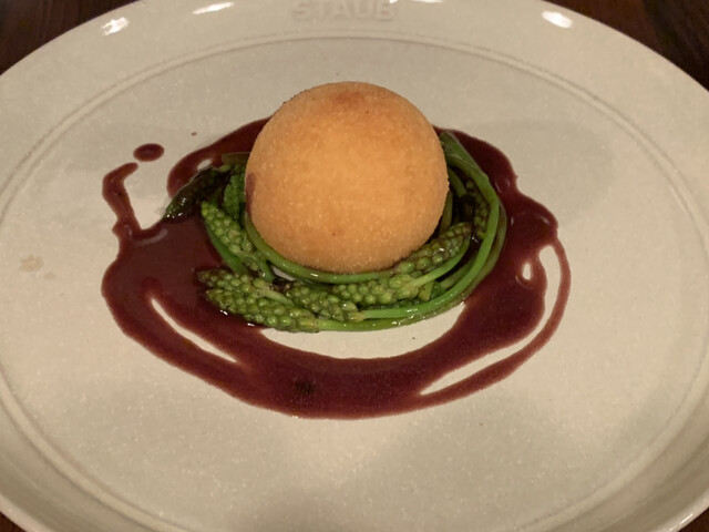 海藻バターが合わさった赤ワインソースがとても良かった。
