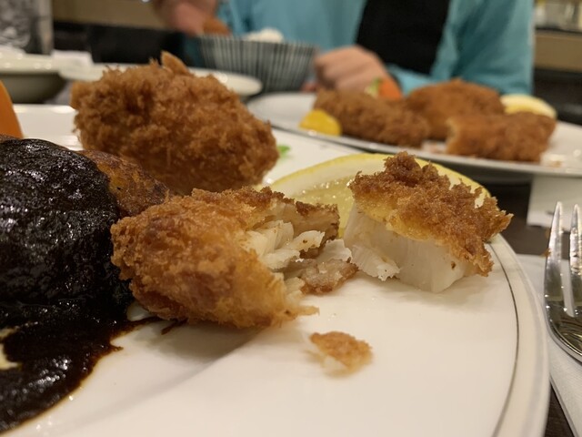 そしてカニクリームコロッケも絶品なのと、車海老のフライも他店では車エビを使えず、コスパ狙いとデカさのインパクト重視による冷凍エビを使うお店がまだまだ多い中で愛知県の県魚である車エビを使うこだわりが味にも出ていて、とても美味しい!